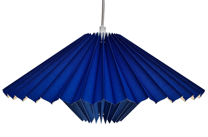 Ans pendel kobolt-hvid Ø45, i plissé kobolt bomuld, med ophæng hvid med 3 meter hvid tekstil ledning, loft montering Ø10/2,5, skærm diameter 45 cm, højde 20 cm, incl. E27 8W LED pære.