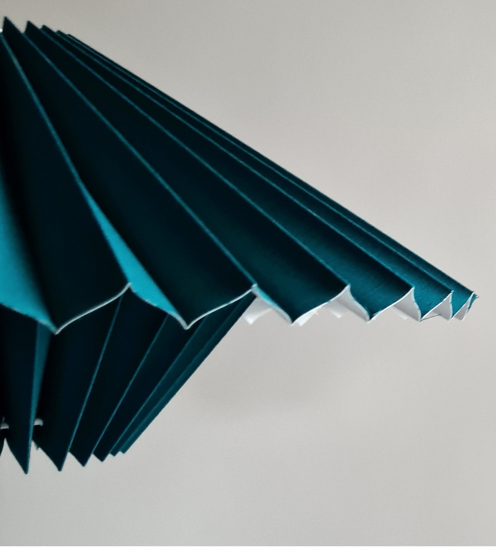 Ans pendel mørk petrol-sort Ø45, i plissé mørk petrol bomuld, med ophæng sort med 3 meter sort tekstil ledning, loft montering Ø10/2,5, skærm diameter 45 cm, højde 20 cm, incl. E27 8W LED pære.