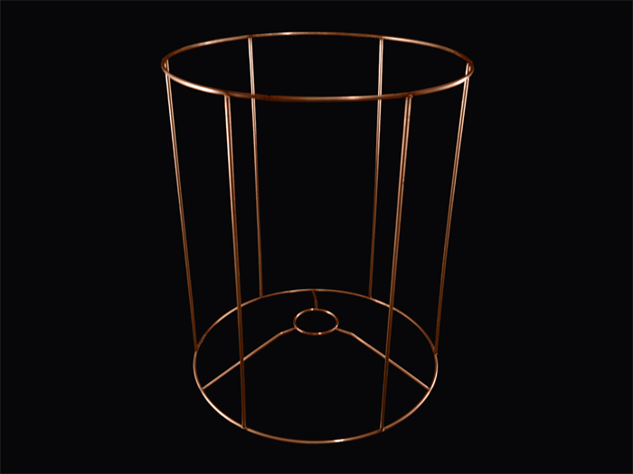 Cylinder stativ 25x30x25 L-T E27 i metal 3mm forkobberet jerntråd, anvendes som pendel eller til bordlampe, til dig som selv vil male stativet, det kræver at det får klar lak eller sølv, guld, sort eller hvad du selv ønsker, da det ellers vil ruste.