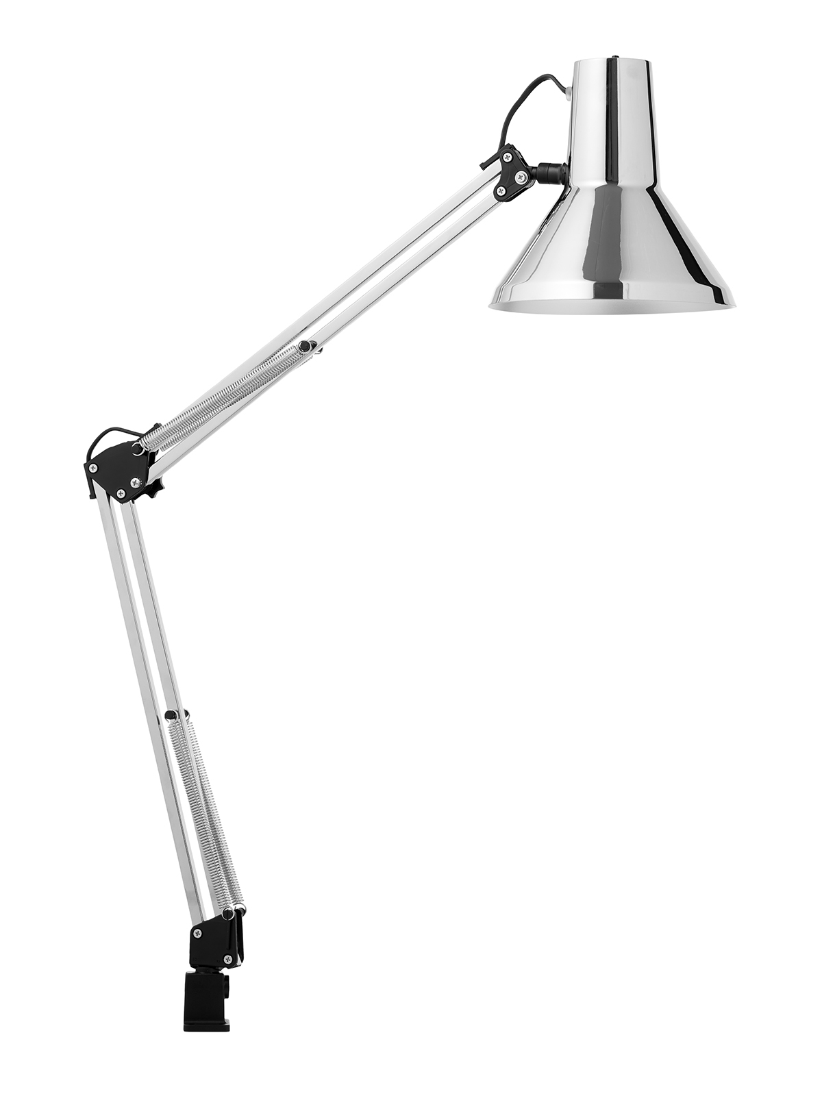Den klassiske arkitektlampe med 4 kraftige fjedre og hoved i et stykke metal. Incl. bordklemme og vægbeslag.