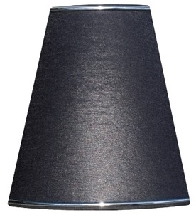 Keglestub 13x31x20 LNF sort chintz med sølv kanter, top 13 cm, side 31 cm, bund 20 cm, montering i top LNF til E27 fatning (2 delt).
