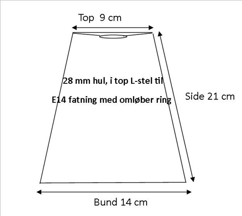 Keglestub 9x21x14 L-E14 grå hør top 9 cm, side 21 cm, bund 14 cm, montering i top L-E14 fatning med omløberring.