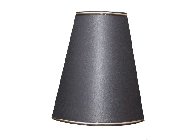 Kegleformet 9x22x20 Sort Chintz med Messing kanter, Top 9 cm, Side 22 cm, Bund 20 cm, montering i Top LNF-Stel til E27 fatning (2 delt).