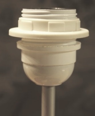 KM 11x22x35 T-E27 creme chintz glittet creme bomuld der giver halvblank glat overflade, med syet kanter, top 11 cm, side 22 cm, bund 35 cm, montering i bund T-E27 fatning med omløberring.