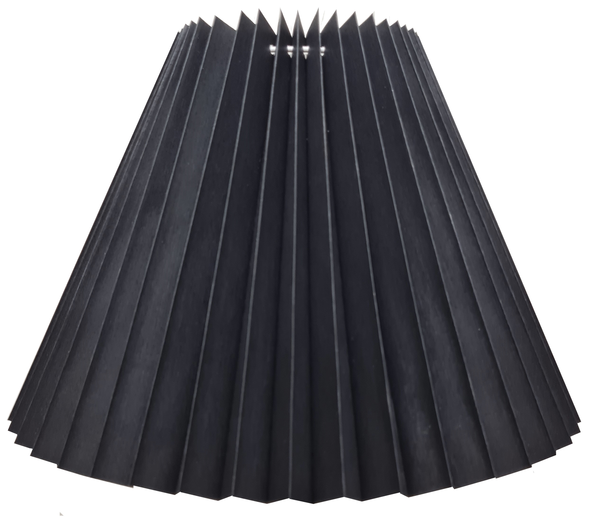 Plissé 12x25x32 T-E27 sort chintz er en stilfuld og moderne lampeskærm, der vil tilføje elegance til enhver indretning. Lavet af sort chintz, glittet bomuld, giver denne lampeskærm en halvblank overflade, der skaber en sofistikeret atmosfære i rummet. Lampeskærmen har en topdiameter på 12 cm, en sidelængde på 25 cm og en bunddiameter på 32 cm. Den er nem at montere på en T-E27 fatning med en omløber ring.