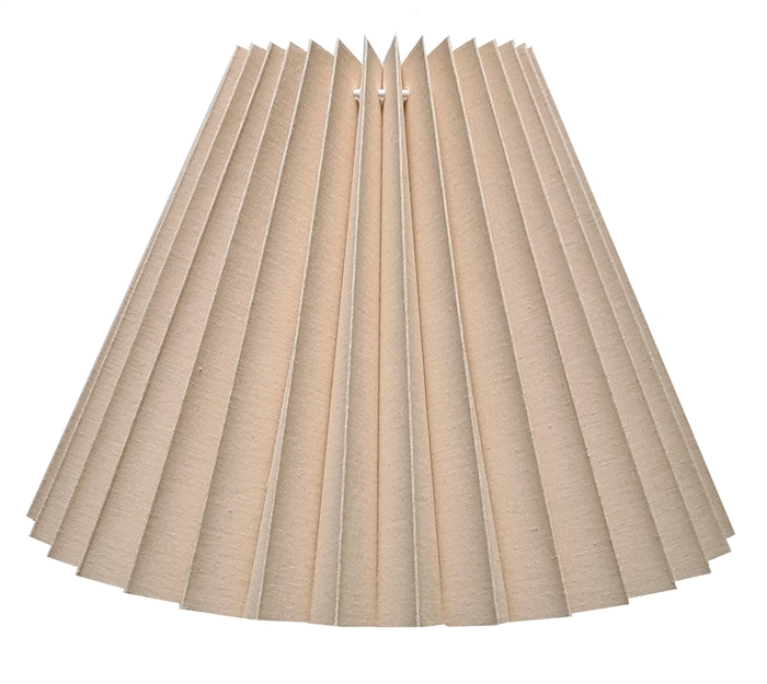 Denne plissé lampeskærm i sandfarvet bomuld med stativ er den perfekte tilføjelse til dit hjem. Med dens mål på 16x30x42 cm (top 16 cm, side 30 cm, bund 42 cm) passer den perfekt til enhver lampe. Den er nem at montere på et bærestativ og vil tilføje et elegant touch til ethvert rum. Lavet af høj kvalitet bomuld, er denne lampeskærm ikke kun stilfuld, men også holdbar. Giv dit hjem et nyt look med denne smukke plissé lampeskærm.