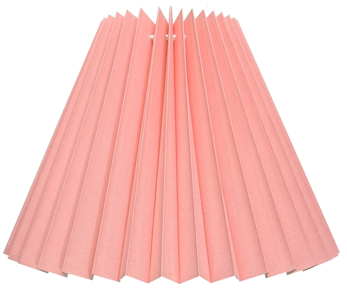 Denne smukke lampeskærm i plisse-stil er perfekt til at tilføje et strejf af elegance til ethvert rum. Med dens dimensioner på 19 cm i topdiameter, 35 cm i sidelængde og 48 cm i bunddiameter passer den let til forskellige lamper og belysningsarmaturer. Lampeskærmen er lavet af høj kvalitet pink bomuld, der giver en behagelig og varm atmosfære i rummet.Denne lampeskærm er designet til at blive monteret på et bærestativ ved hjælp af BR monteringen.
