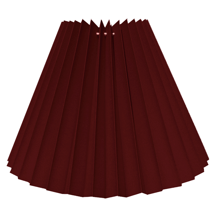 Plisse 9,5x18x25 KP bordeaux bomuld Top 9,5 cm, Side 18 cm, Bund 25 cm, montering til pæreklemme E14 krone (lille rund).