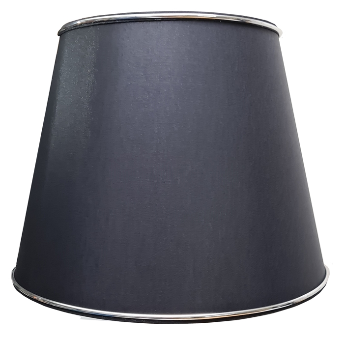 Ret 19x22x28 TNF sort - sølv sort chintz med sølv kanter glittet bomuld med halvblank overflade, top 19 cm, side 22 cm, bund 28 cm, montering i bund TNF til E27 fatning (2 delt).