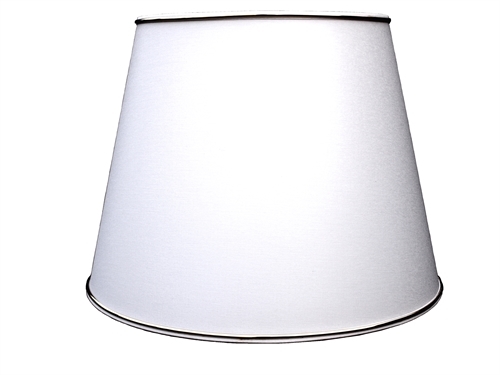 hvid chintz med messing kanter glittet bomuld med halvblank overflade, top 23 cm, side 26 cm, bund 34 cm, montering til bærestativ.