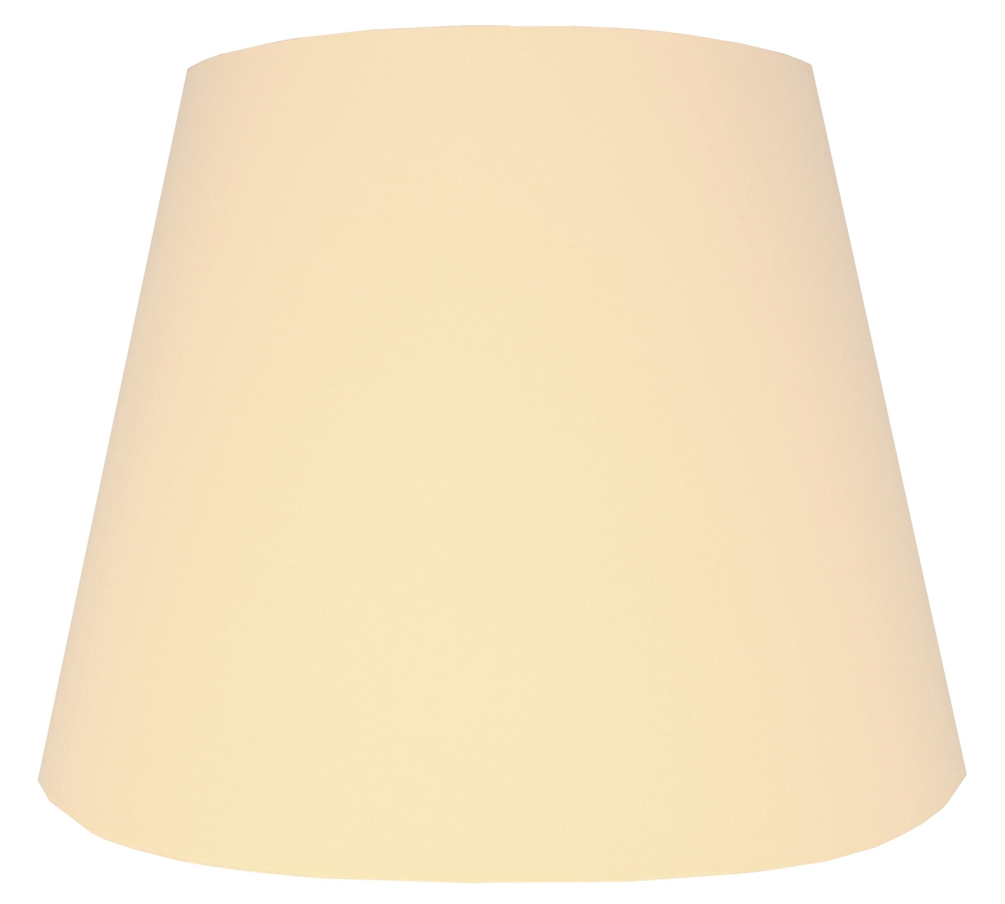 Ret 25x28x36 T-E27 sandfarvet bomuld håndlavet med ombukket kanter, Top 25 cm, Side 28 cm, Bund 36 cm, montering i bund T-E27 til E27 fatning med omløber ring.
