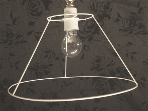 Lampeskærm skrå 14x17x27 Mosaik LNF hvid med bomuld med sort tryk Top 14 cm, Side 17 cm, Bund 27 cm, montering i top LNF-stel til E27 til fatning (2 delt).