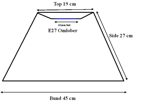 Lampeskærm skrå 19x27x45 Brun papir L-E27 Top 19 cm, Side 27 cm, Bund 45 cm, montering i top L-stel til E27 fatning med omløber ring.
