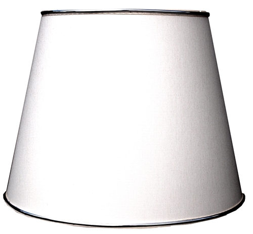 Lampeskærme i ret model hvid chintz med sølv kanter, uden låg, alle størrelser