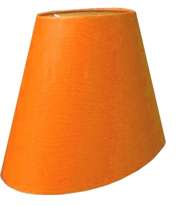 Oval 15x18x28 T-E14 orange bomuld håndlavet med ombukket kanter, top 15x11 cm, side 18 cm, bund 18x28 cm, montering i bund T-E14 til E14 fatning med omløber ring.