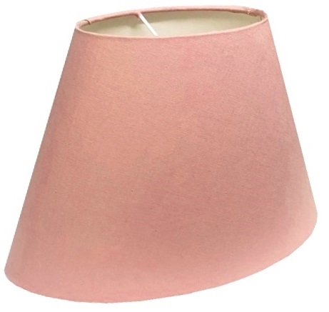 Oval 15x18x28 TNF abrikos bomuld håndlavet med ombukket kanter, top 15x11 cm, side 18 cm, bund 18x28 cm, montering i bund TNF til E27 fatning (2 delt).