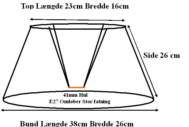 Oval 23x16-26-26x38 T-E27 hvid hør top 23x16 cm, side 26 cm, bund 26x38 cm, montering i bund T-E27 fatning med omløber ring.