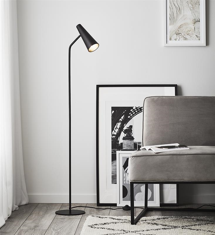 Peak gulvlampe H125 i metal sort, med afbryder på ledning, MAX 40W E14, Base 25 cm, dybde 22 cm, højde 125 cm.