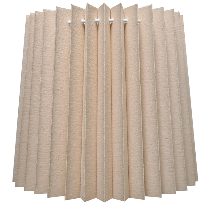 Opgrader dit hjem med elegance og stil takket være vores 'Plissé Cylinder Lampeskærm i Sandfarvet Bomuld'. Denne smukke lampeskærm er håndlavet i høj kvalitet sandfarvet bomuld, der tilfører et naturligt og blødt lys til ethvert rum. Med dimensionerne top 24 cm, side 25 cm og bund 29 cm, passer denne cylinderformede lampeskærm perfekt til de fleste standard bærestativer.Denne lampeskærm er ikke blot funktionel, men også en stilfuld tilføjelse til din indretning, perfekt til både klassiske.
