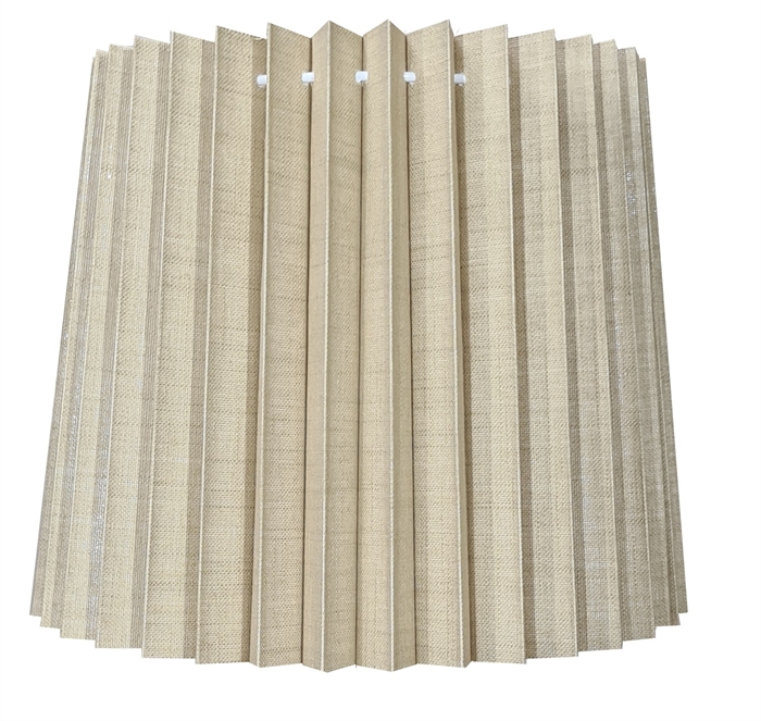 Opgrader dit hjem med den elegante 'Plissé Cylinder Lampeskærm' i en smuk, sandfarvet hør. Dette stilfulde tilbehør er designet med en plissé-struktur, der tilføjer et moderne twist til klassiske indretninger. Lampeskærmen måler 31 cm i toppen, 33 cm på siden og 38 cm i bunden, hvilket sikrer en harmonisk og flatterende lysfordeling i ethvert rum. Denne lampeskærm er ideel til montering på lamper med L-E27 fatning, og den er udstyret med en omløber ring.