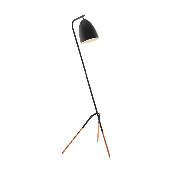 Westilinton gulvlampe i metal Sort og Kobber med fodafbryder, MAX 60W E27, diameter 42 cm, højde 148 cm.